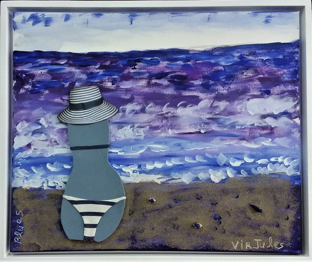 Acrylique et sable, huile et fixation d'objets sur toile de coton