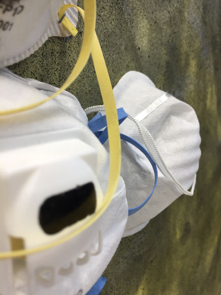 Fixation d'objets (vieux clous et ballons) sur toile de coton